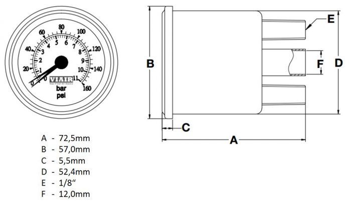 PSI, hva? Jeg vil ha BAR! Analogt manometer med svart urskive og kromring. Uten unødvendig PSI-skala, bare det du virkelig trenger, 0-160 psi.